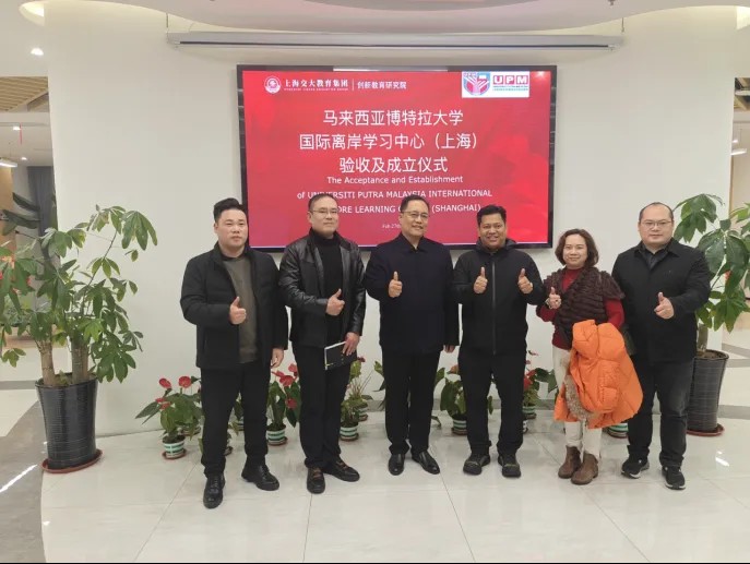 2025年2月25日,马来西亚博特拉大学(Universiti Putra Malaysia, UPM)副校长Prof. Dr. ARIFIN BIN ABDU、国际事务高级专员MOHD HAKEEM BIN MOHD IBRAHIM一行访问上海交大教育集团浦东创新校区,圆满完成马来西亚博特拉大学中国境内首个国际离岸学习中心的验收工作,并出席成立仪式。